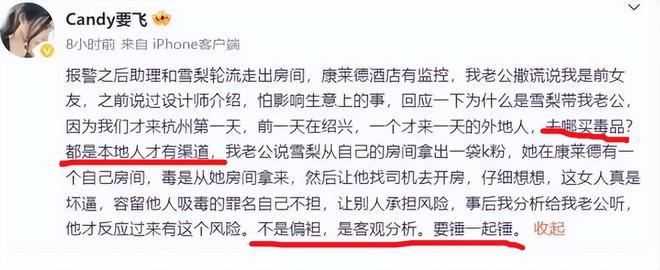 先说一说雪梨被爆出吸 D 的事情,她被爆料者点名是当三吸 D,并且还原了自己老公与雪梨在一起的各种过程。