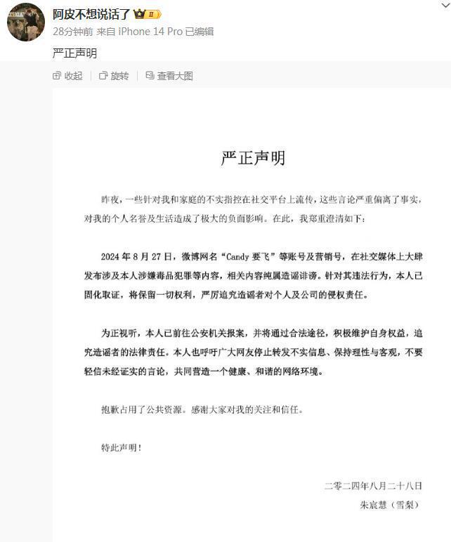 不过对于这样子的爆料,雪梨否认,表示相关内容纯属造谣诽谤,针对其违法行为,已固化取证!