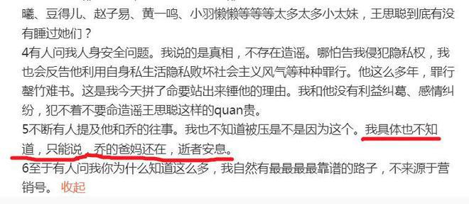 爆料者:不断有人提及他和乔的往事,我也不知道被压是不是因为这个。我具体也不知道,只能说,乔的爸妈还在,逝者安息。