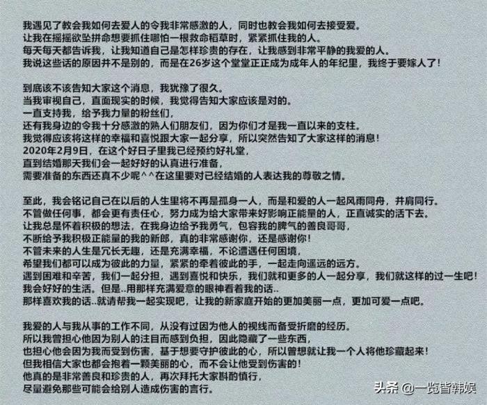 在2025年10月份的时候李雅琳就正式宣布了与大2岁的圈外男友金英杰结婚的消息,出生于1994年的李雅琳在25岁的时候就选择嫁人大家还是非常惊讶的,不过大多数的粉丝和网友还是送上了祝福。