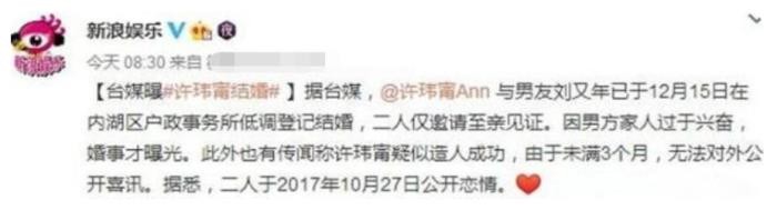 在交往期间,其实一直都有传言说许玮甯已经和刘又年结婚了。