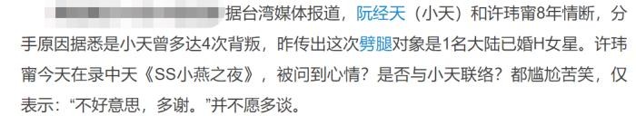 当时大家都以为是分手了,谁都没想到今天上午,一家台媒却突然出来爆料——