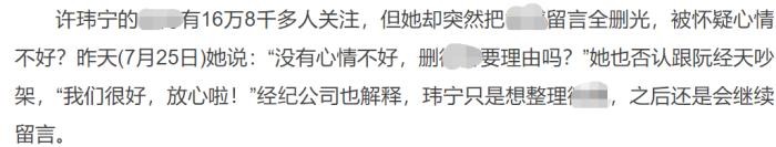 尽管双方当事人都很快否认了恋情,许玮甯也表示没有和阮经天吵架,但她还是在当天删掉了所有在社交平台上的动态。