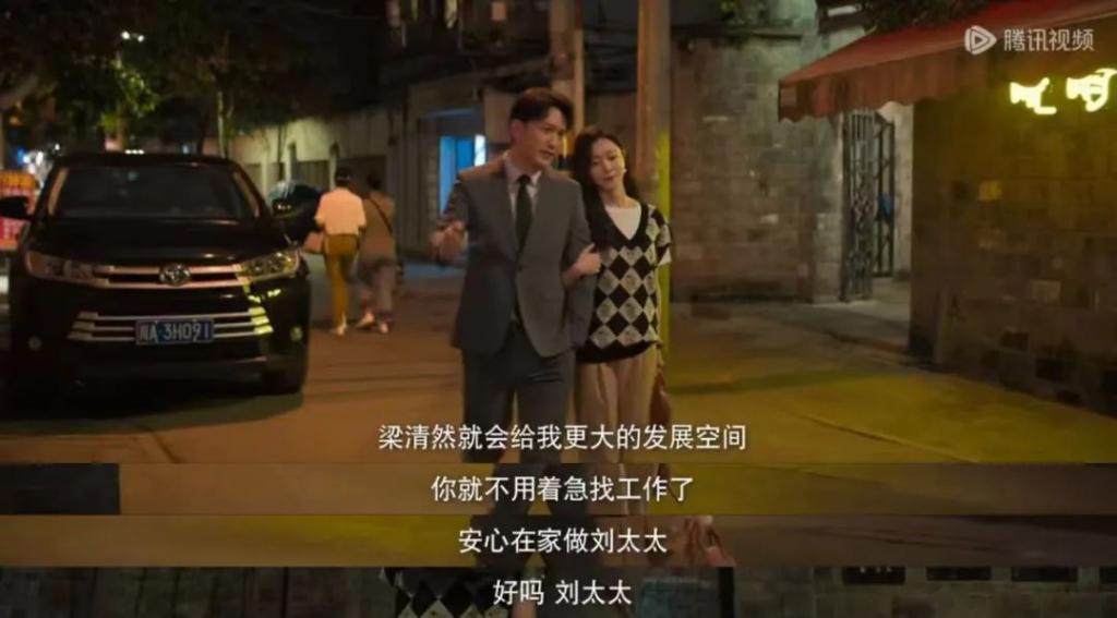 女强人梁清然,出场西装配细长高跟鞋,行走在小巷子里。是刻板的刑具,是女性要兼顾事业和外貌。
