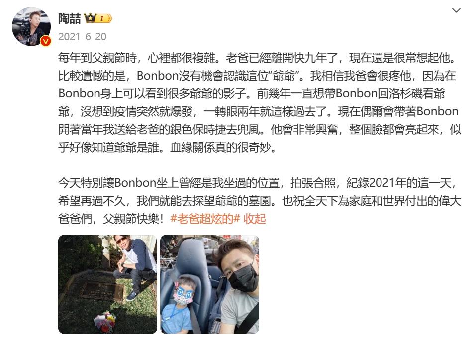 虽然在官方声明中用 " 淘气转身,幽默神隐 " 的乐观话语面对父亲的离世,但其实陶大伟的突然离开,对陶喆打击很大。不仅精神变得憔悴,工作节奏也被打乱:一直在筹备的电影遥遥无期,专辑也无法再像之前一样先定主题,再全身心投入创作。