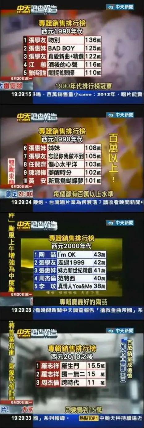 1990s、2000s、2010s 台湾专辑销量断崖式下降