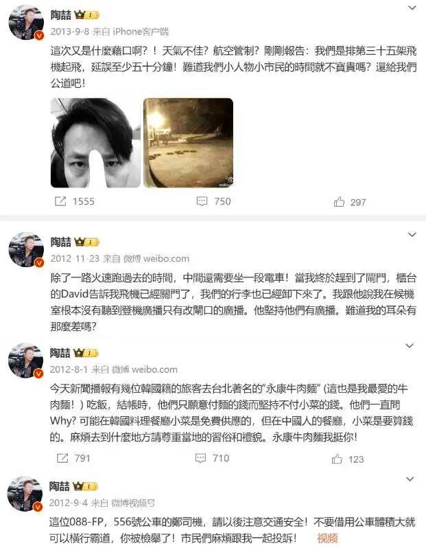 早年间的微博,也记录下了陶喆的许多愤慨时刻。
