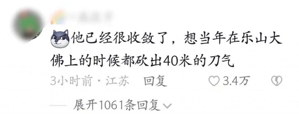 更是有网友在评论区开玩笑道:他已经很收敛了,想当年在乐山大佛上的时候都砍出 40 米的刀气。虽然这一段明显能看出来是在开玩笑,但是从这段评论中我们也不难看出,赵文卓身为功夫巨星的身份在网友心中的地位。