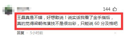 回过头再看王晶的那段点评,不得不说他是站在高处来思考这个问题,把机会让给年轻人才能促进港片的再次繁荣,并没有贬低梁朝伟的意思。
