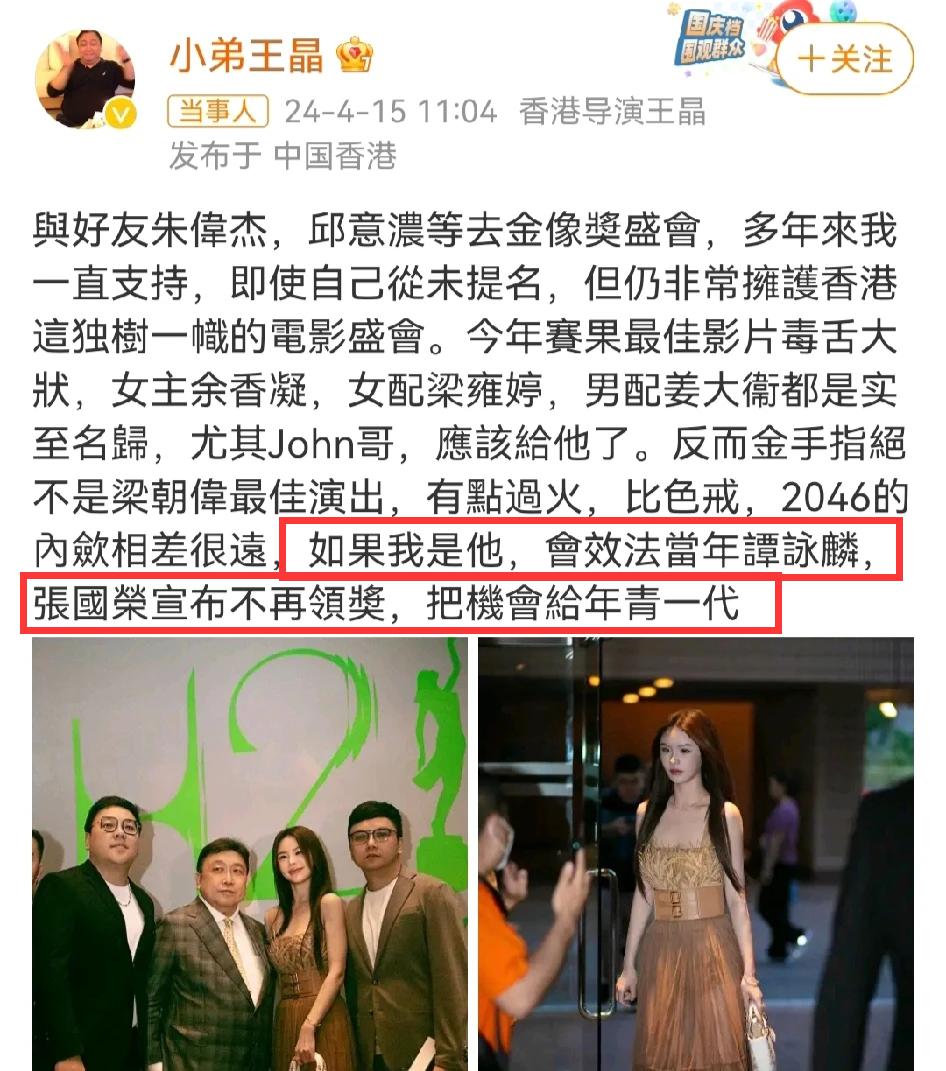 " 如果我是他,会效法当年谭咏麟,张国荣宣布不再领奖,把机会给年青一代 "