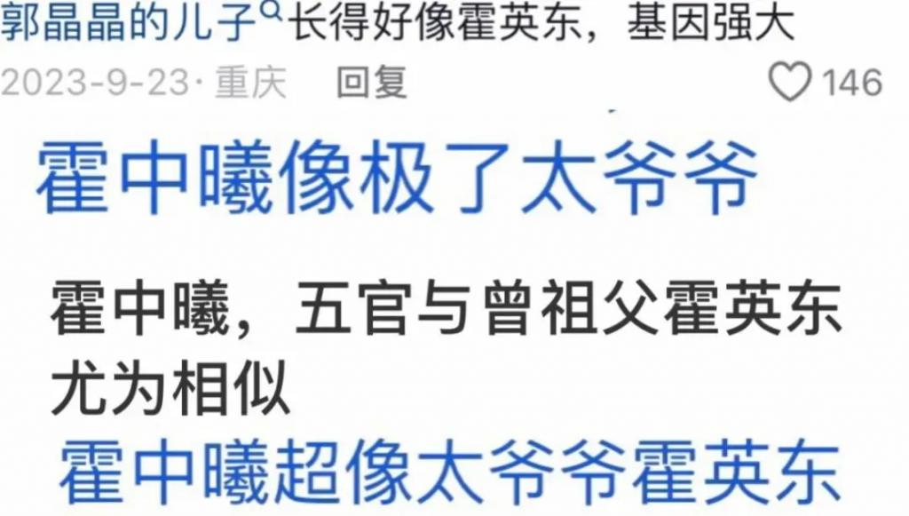 不少网友看了霍启刚和郭晶晶带着儿子霍中曦去看舞剧《咏春》的近照,都觉得他很会长,越长越像霍英东,脸型、眼睛和鼻子简直如出一辙,简直是小霍英东。