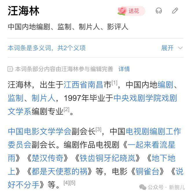 搜索相关信息来看,汪海林很喜欢点评和开炮,在影视圈内应该具有较高知名度。毕竟,上古时代的《铁齿铜牙纪晓岚》还是让很多人熟悉的。