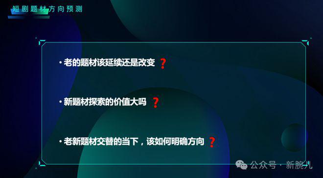 老题材多做内容的创新,还有一个就是新入场的朋友,没有做出一部成功作品的时候,我觉得一定要遵循到题材的规律慢慢去做。因为老题材还有非常大的受众,网文是根据内容改编的题材是非常大的分类,这肯定是有数据支撑的,所以新入场的朋友可以看老题材。