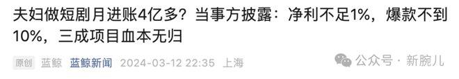 这俩不会认为说的北京夫妇月进账 4 亿是这家公司和咪蒙故意放出来吸引外面投资短剧的吧?
