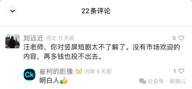 两位从一开始就搞错了,这信息并非北京夫妇公司和咪蒙对外释放的,什么吸引投资,什么炒作上热搜,作为短剧行业媒体,新腕儿可以负责任的告诉两位,你们两位聊天的基本信息点全错。