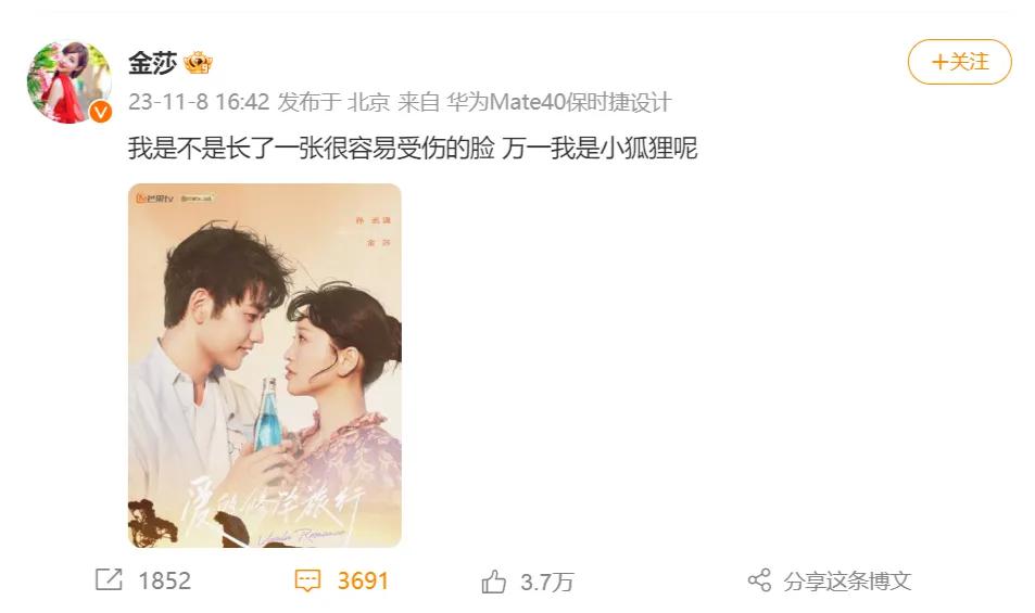 全网都开始担心金莎恋爱脑,要被骗,但金莎却发了条微博隐晦地说:我不傻。