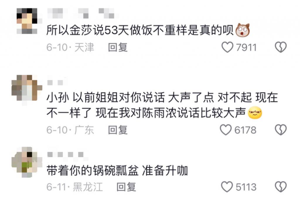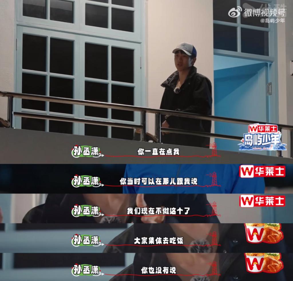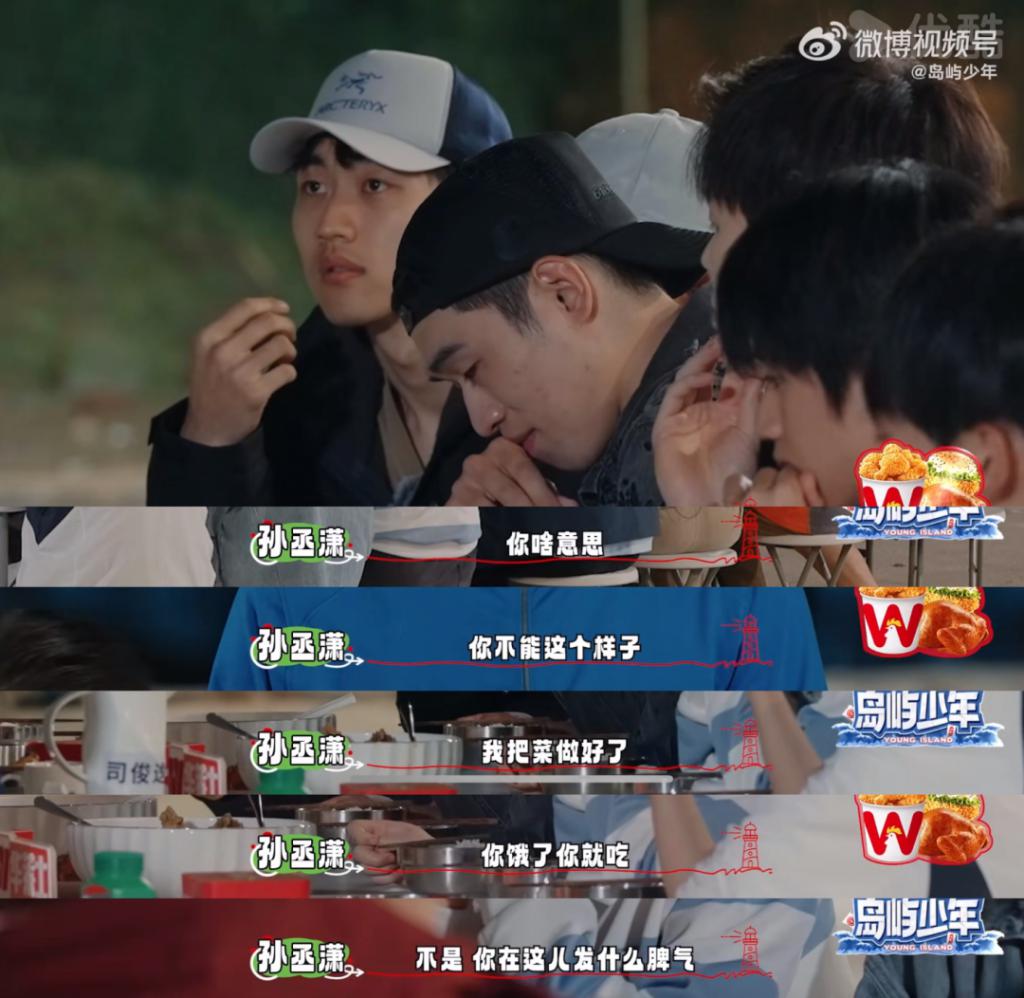 眼看气氛凝固,有队友进厨房把孙丞潇叫出来,刚坐下,陈雨浓开始一番指桑骂槐,阴阳攻击: