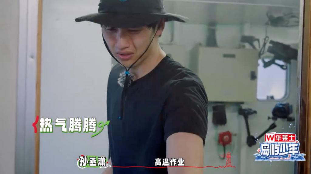 孙丞潇和同伴出海打渔,出现晕船症状,但依旧默默干活,晚上还在闷热的船舱里给船员们做晚饭,按时完成任务。