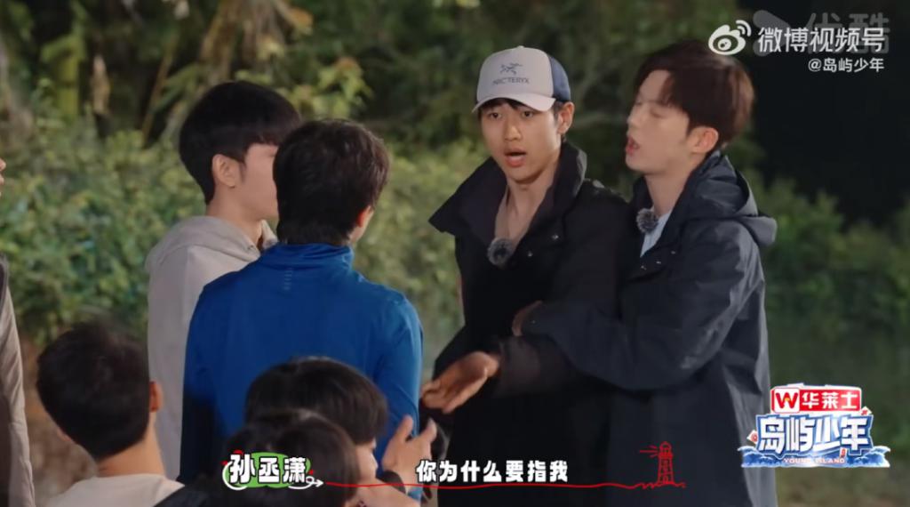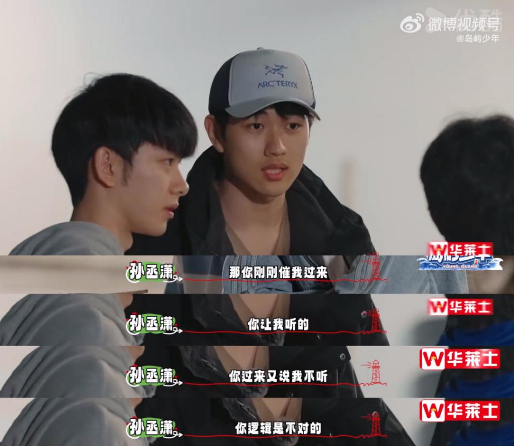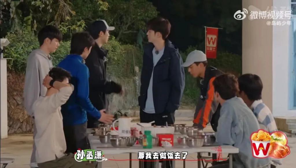 但让孙丞潇直接出圈的,还是和团队队长陈雨浓的一次争执。上岛一周后各小组都忙着规划节目任务,会做饭的孙丞潇决定给全队 13 个人做晚饭。