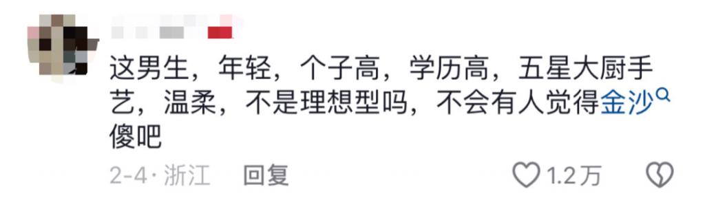 网友终于理解金莎为什么说,自己和孙丞潇从不吵架,有什么不高兴立马说,孙丞潇马上改。毕竟,孙丞潇生气之后只会大声地说:" 那我去做饭了!"