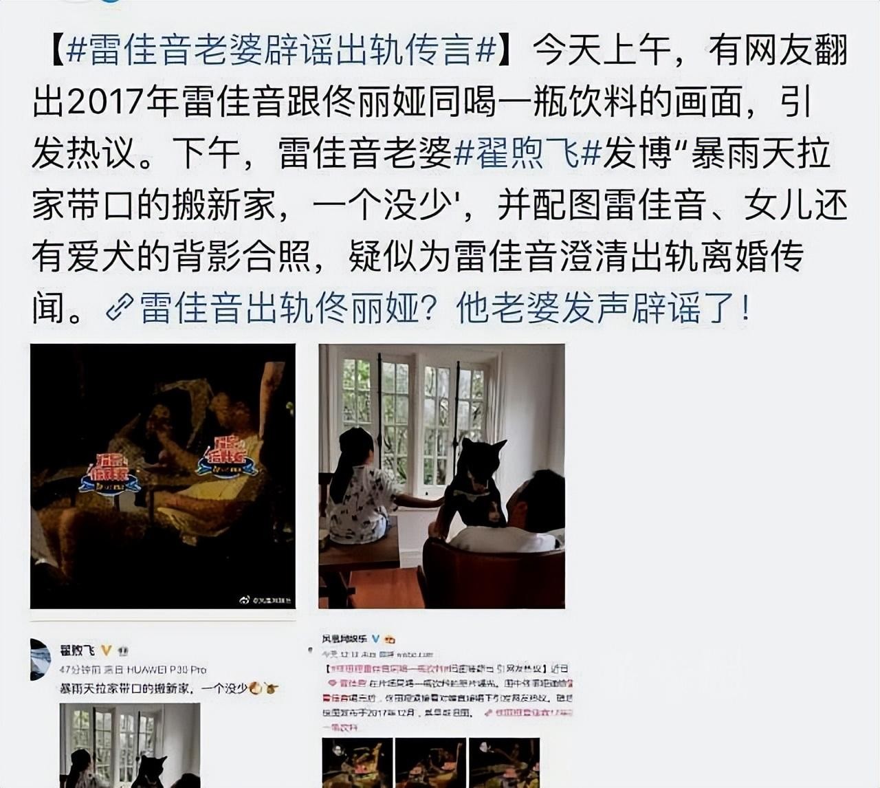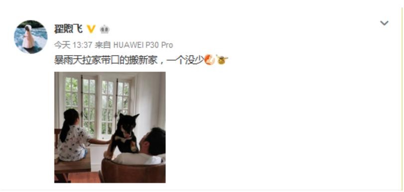 面对网上的舆论,许久不发动态的翟煦飞罕见在微博上发文称雨天搬家一个不少,并配上了一个皮卡丘的表情,图片上有其女儿和雷佳音背影的合照,此举有可能意在回应外界的传闻。