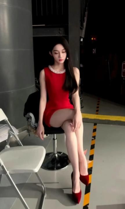 她的身材纤细、身形娇小、小鸟依人。
