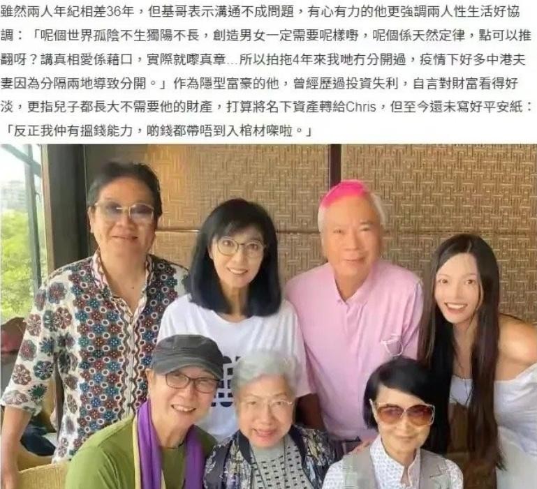 据港媒报道,李龙基和女友在疫情期间朝夕相处了三四年,虽然相差36岁,但思想上沟通没有代沟,而且夫妻生活非常和谐。