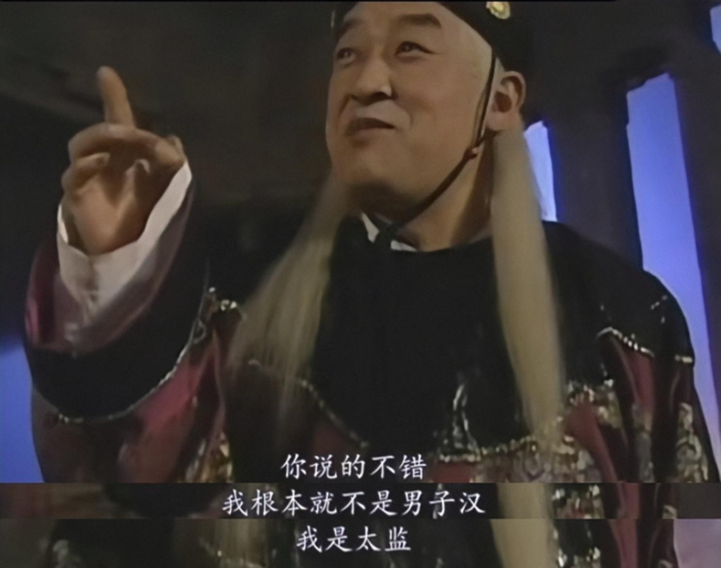 李建义饰演的曹正淳嘿嘿一笑,手指轻轻地虚空一点:“你说得不错,我根本就不是男子汉,我是太监。”