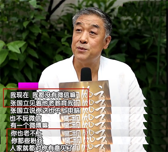 张国立见到他就批评他:“你不玩电脑也不玩手机,就一个社交账号你还老不上,你的粉丝都对你有意见了。”