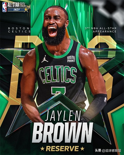 杰伦-布朗生涯第3次入选全明星,本赛季,布朗场均拿到22.6分5.4篮板3.7助攻1.1抢断,与塔图姆携手参加全明星正赛,目前凯尔特人37胜11负排在联盟第一。