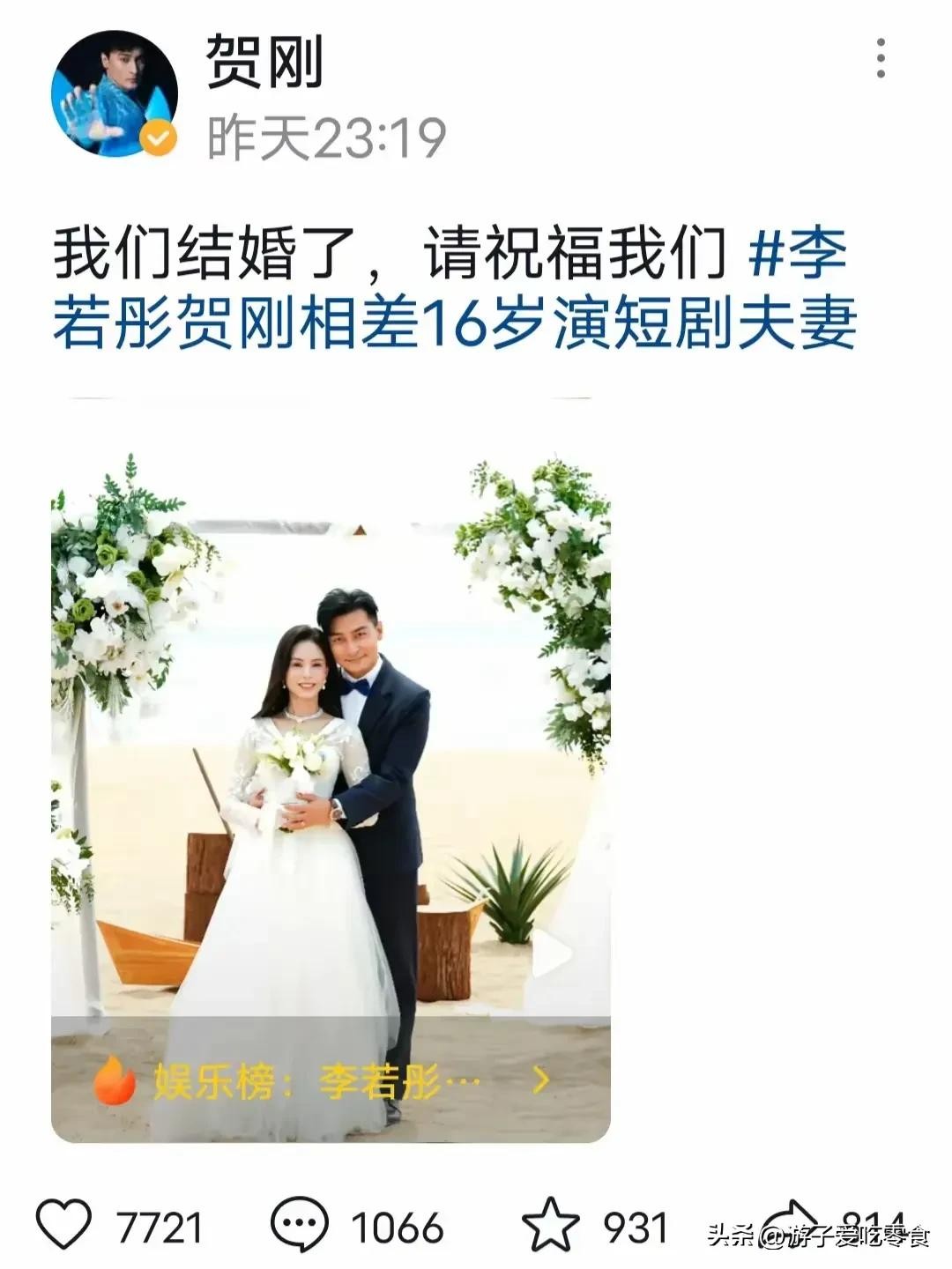 娱乐圈的惊喜,李若彤贺刚居然结婚了,网友感叹真爱无敌。