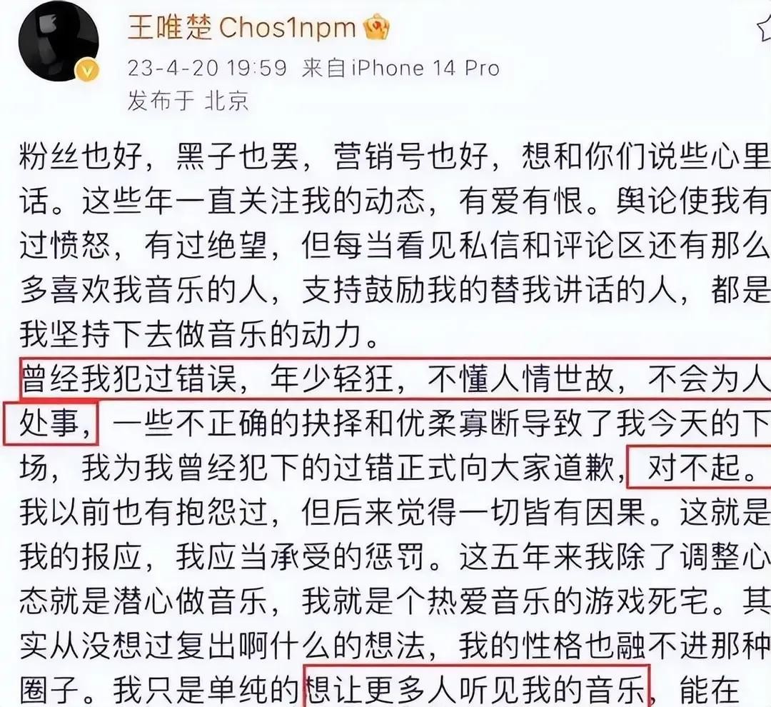 这次公众态度很坚决,演出信息开票 24 小时内就被下架。这又给了 PGone 沉重一击,也证明公众还是难以原谅和接受他。他在社交平台喊冤说“音乐是无罪的!”但在多数网友看来,这只是他为复出做的无力挣扎,改变不了公众看法。