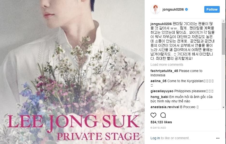 当时因为粉丝见面会的日期迟迟无法敲定,让李钟硕忍不住在IG PO文,向粉丝们道歉,并指因为YG的各部门自尊心和自负心都很高,导致彼此出现沟通不良的问题,担心见面会没办法举办。或许是见到了李钟硕的PO文,YG马上与李钟硕协调后,见面会的日期也很快的定了下来。