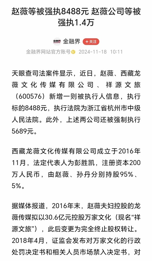 近几年赵薇这官司可不少。就今年 4 月,她名下企业就被冻结了。本以为这事儿就这么着了,谁能想到,现在又冒出来个被执行人的消息。虽说执行标的才 8488 元,这8488对于他们这些明星,简直就是九牛一毛,可如今就连着一毛也不愿意拔,可想而知,他还有多少黑料没有爆出来。