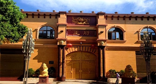 这座建筑占地面积达万余平方米,采用仿古风格,气势不输古代王府,高大的朱红色门楼上还悬挂着“王林大师”的巨幅金字招牌。