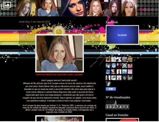 有网友先前在互联网发文,艾薇儿 17 岁出道时因无法适应爆红生活,便找相似度极高的梅莉莎(Melissa)当她的替身,艾薇儿还教她唱歌,2 人还因此成为「闺密」。不过艾薇儿的爷爷 2003 年过世,她因悲伤过度选择轻生,但唱片公司为了赚钱,才让梅莉莎扶正成为「艾薇儿」。原文甚至找出艾薇儿历年的照片比对,表示艾薇儿的穿着、相貌改变都相当大,以前走红地毯都穿裤子,但 2003 年却开始改穿裙子,痣的位置,脸型也都有改变。「3 大证据」在网路上传得沸沸扬扬,且每隔几年就会爆出来引发议论。