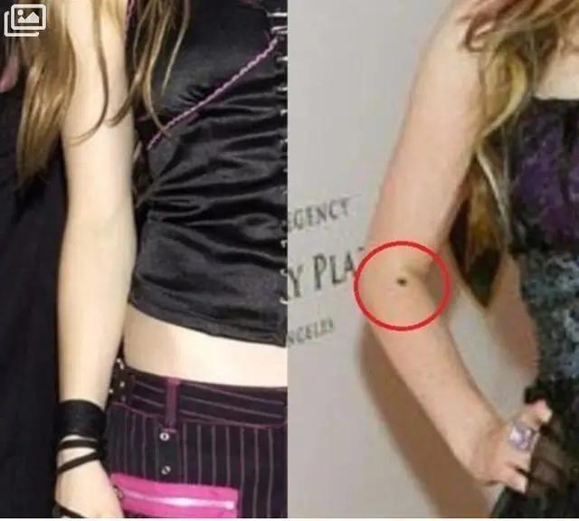 外国网友比对艾薇儿 2003 年前后期的照片,认为她身上的痣前有明显差异。