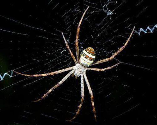 10、断纹金蛛:这种蜘蛛经常在呆在网上名称,中国有多少种蜘蛛种类,模拟成小动物的姿态,引猎物上钩大全,蜘蛛种类辨认。但是在人类昆虫看来却是十分可爱常见。