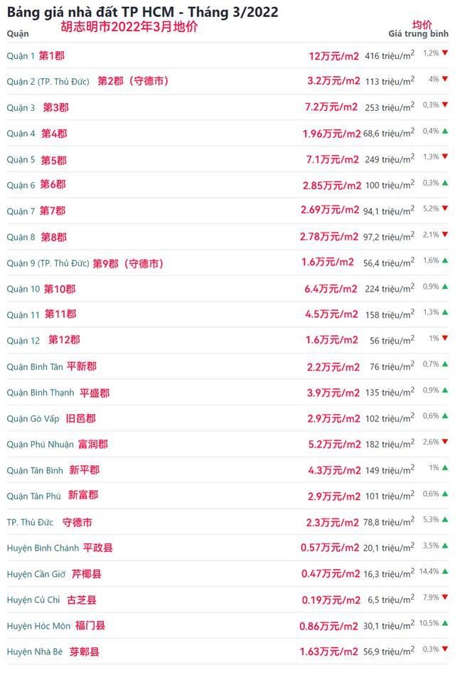 就拿越南胡志明市来说,2025年3月份的地价,每个郡都在涨,最高都达到12万每平米。