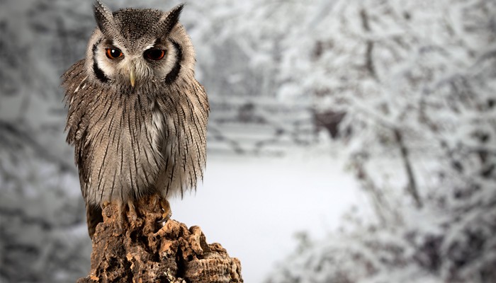 猫头鹰别名鸮,因其面貌似猫,人们一般称它们为猫头鹰。猫头鹰喜欢白天躲在树叶间睡觉,等到夜幕降临出觅食,是森林里的捕鼠专家。由于猫头鹰的眼睛长在头部前方,不像别的鸟那样长在两边,因此它们想全方位观察四周情况时,只能不停地转动脑袋。