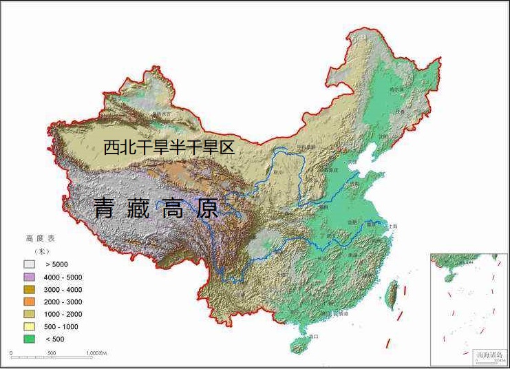 很明显,由于我国的青藏高原地区,平均海拔在4000米以上,形成了终年低温的高山气候,自然环境十分恶劣脆弱,不适宜人类大规模生存。此外,我国的西北地区,特别是新疆地区深居内陆,距海遥远,加上地形封闭,降水稀少,荒漠广布,也不适宜人类大规模生存。因此,除去这些地区,我国的“有效国土”面积约占全国领土总面积的60%左右,大约为550万平方千米,比俄罗斯的“有效国土”面积要大。