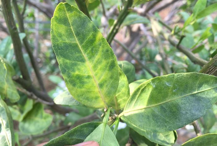 不规则黄化是柑橘黄龙病的重要特点。