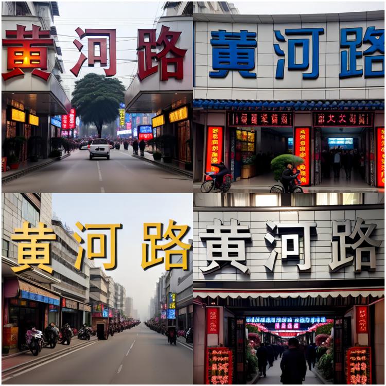 短评:提示词中的黄河路字样并没有体现,仅表现出了街头,但是不够繁华也看不太出来是上海。画面效果还不错。