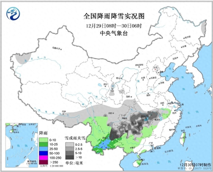 中央气象台的监测数据显示,在12月29日-12月30日,湖南几乎全省下雪,多地更是下起猛烈的中到大雪,其中湖南西南部、湖南北部等地还有暴雪出现,在湖南近些年的历史上是比较少见的,仅有湖南南部一线没有下雪。