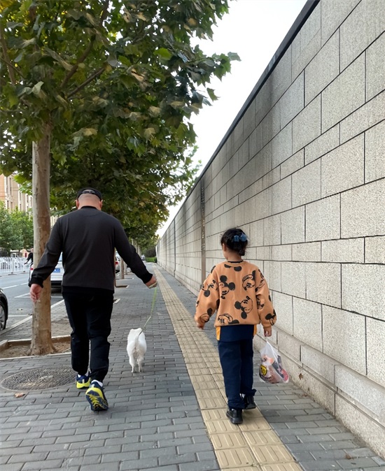 郑敏镜头下,陪着女儿到户外骑行的小岳岳头戴棒球帽,身穿白色运动外套黑色休闲裤,一身装扮舒适又接地气,只见小岳岳脚上踩着小滑板车,与他“强壮”的身形可以说是形成一种反差萌。