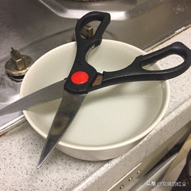 1、在灶台、炉台上放一满碗清水,在碗上平放一把剪刀。