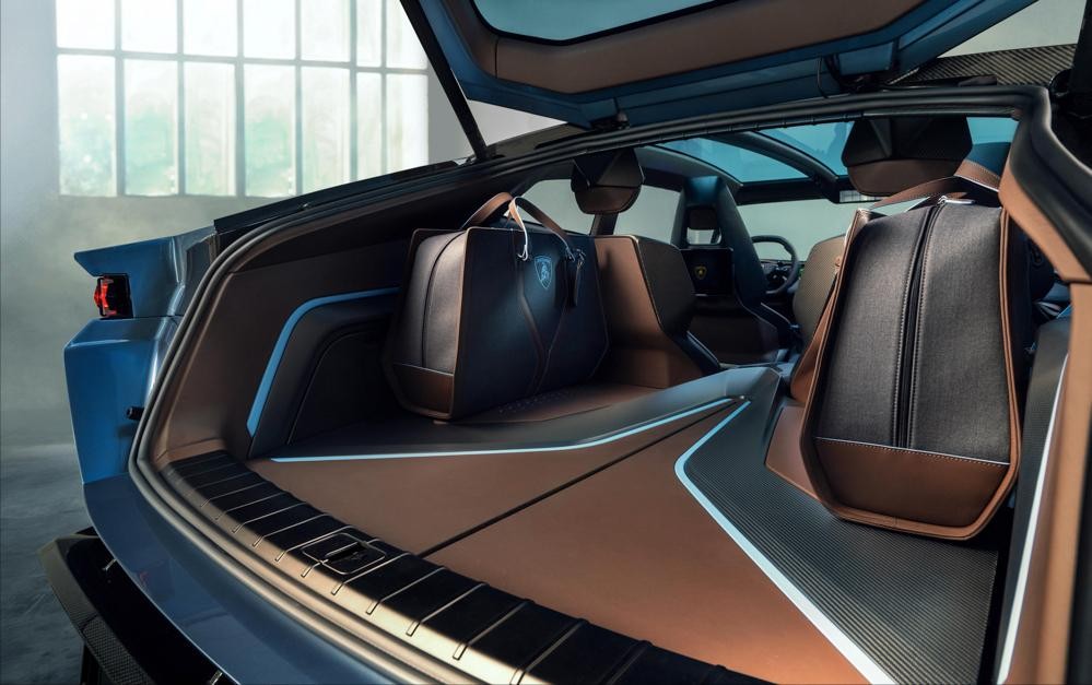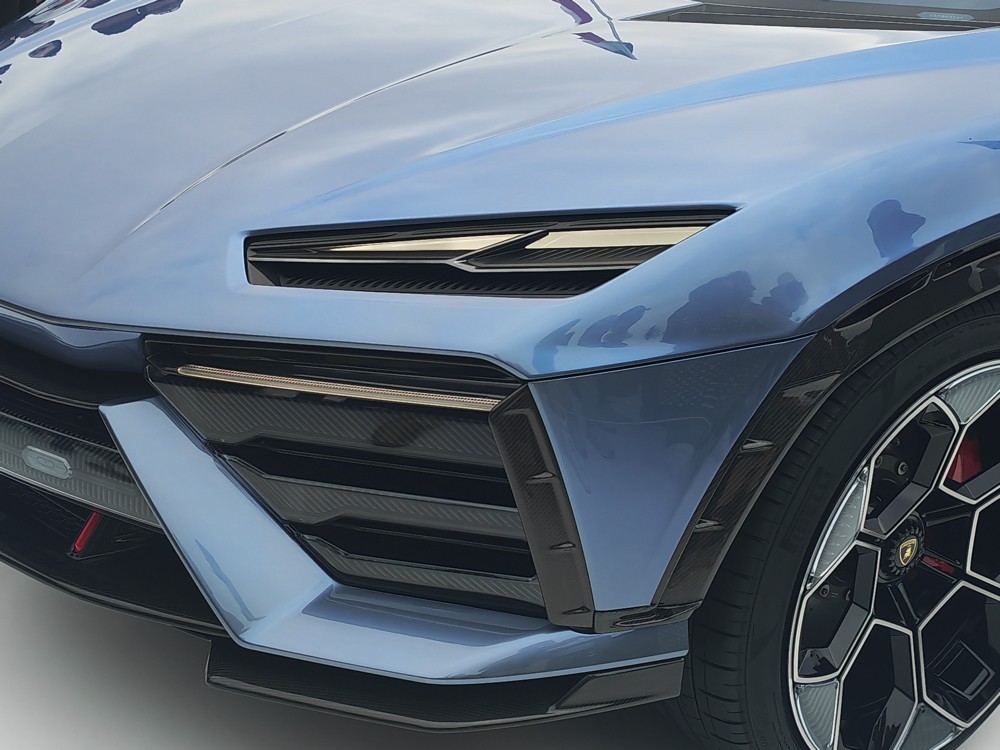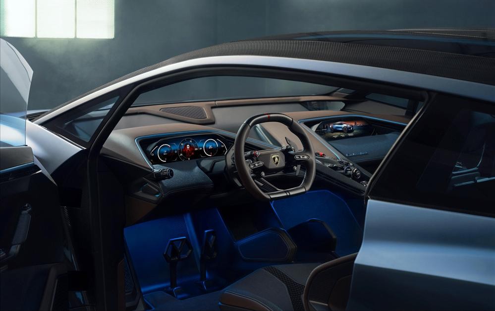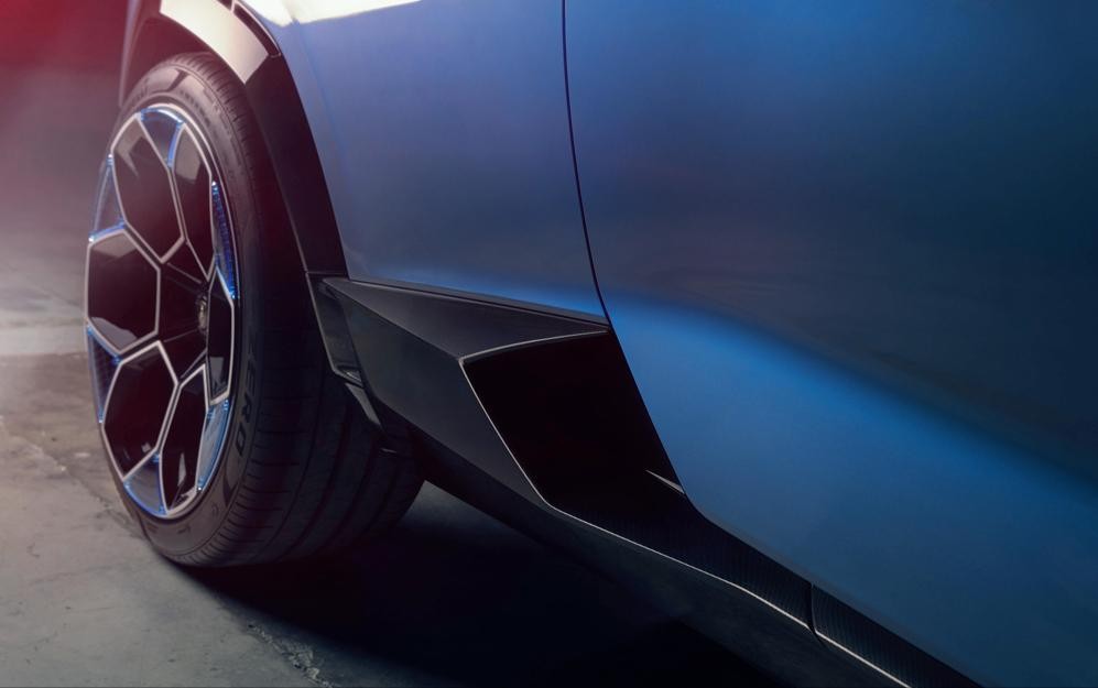 整体外观造型非常科幻,其设计灵感来自于太空飞船,依旧大量采用 兰博基尼 经典的设计元素,拥有分离式头灯组,侧面复杂的腰线勾勒出强烈的车身肌肉感,车尾具备极具辨识度的三个椭圆灯组。