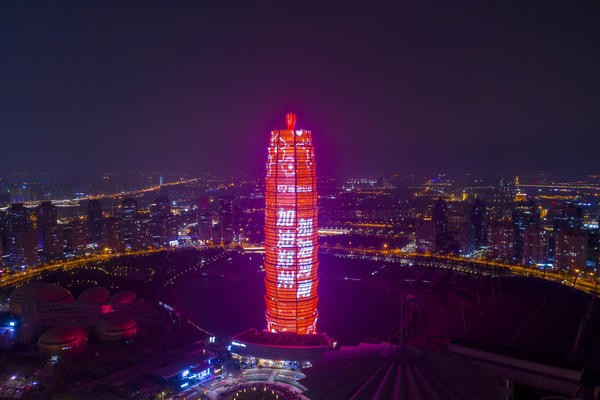加油郑州,加油河南!时隔40余天,郑州“大玉米”再次点亮夜空