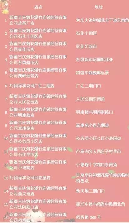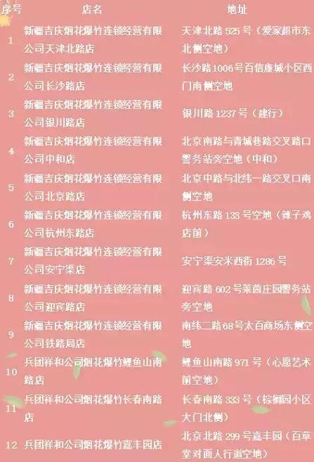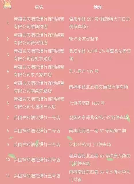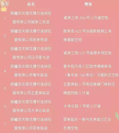 经济技术开发区(头屯河区)烟花爆竹零售店地址