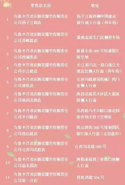 乌鲁木齐设立的50个烟花爆竹零售网点
